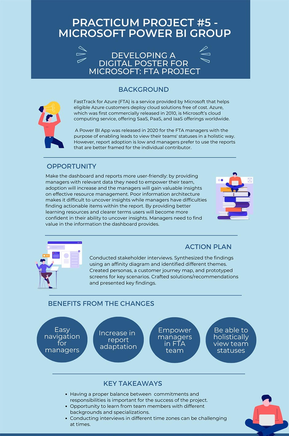 In 2020, a Power BI App was released for the managers in FastTrack for Azure with the purpose of enabling leads to view their team's statuses in a holistic way. However, report adoption is low and managers prefer to use the reports that are better framed for the individual contributor.Stakeholders include: